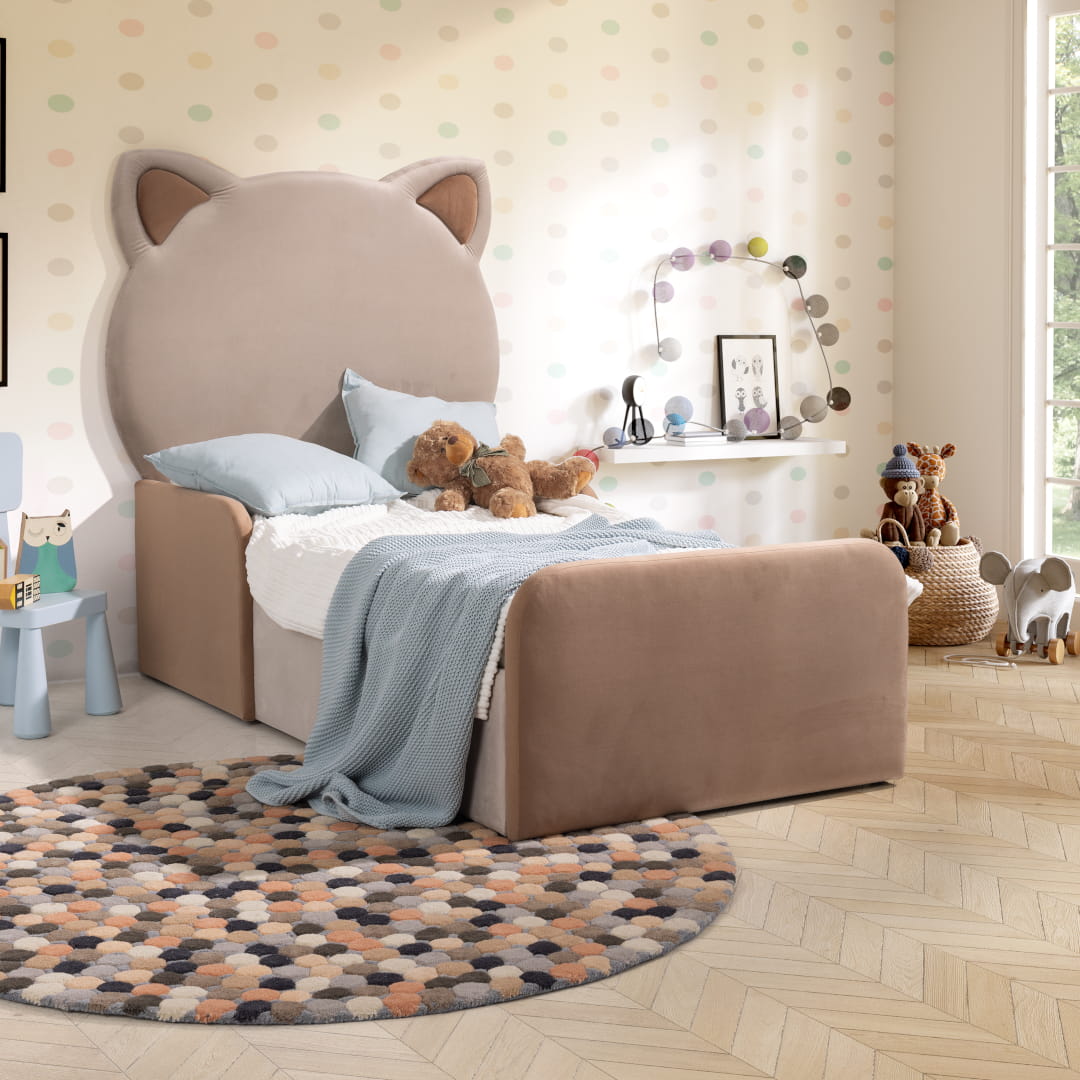 Funkcjonalne i nowoczesne tapicerowane łóżko KOTEK świetnie sprawdzi się w pokoju dziecięcym.