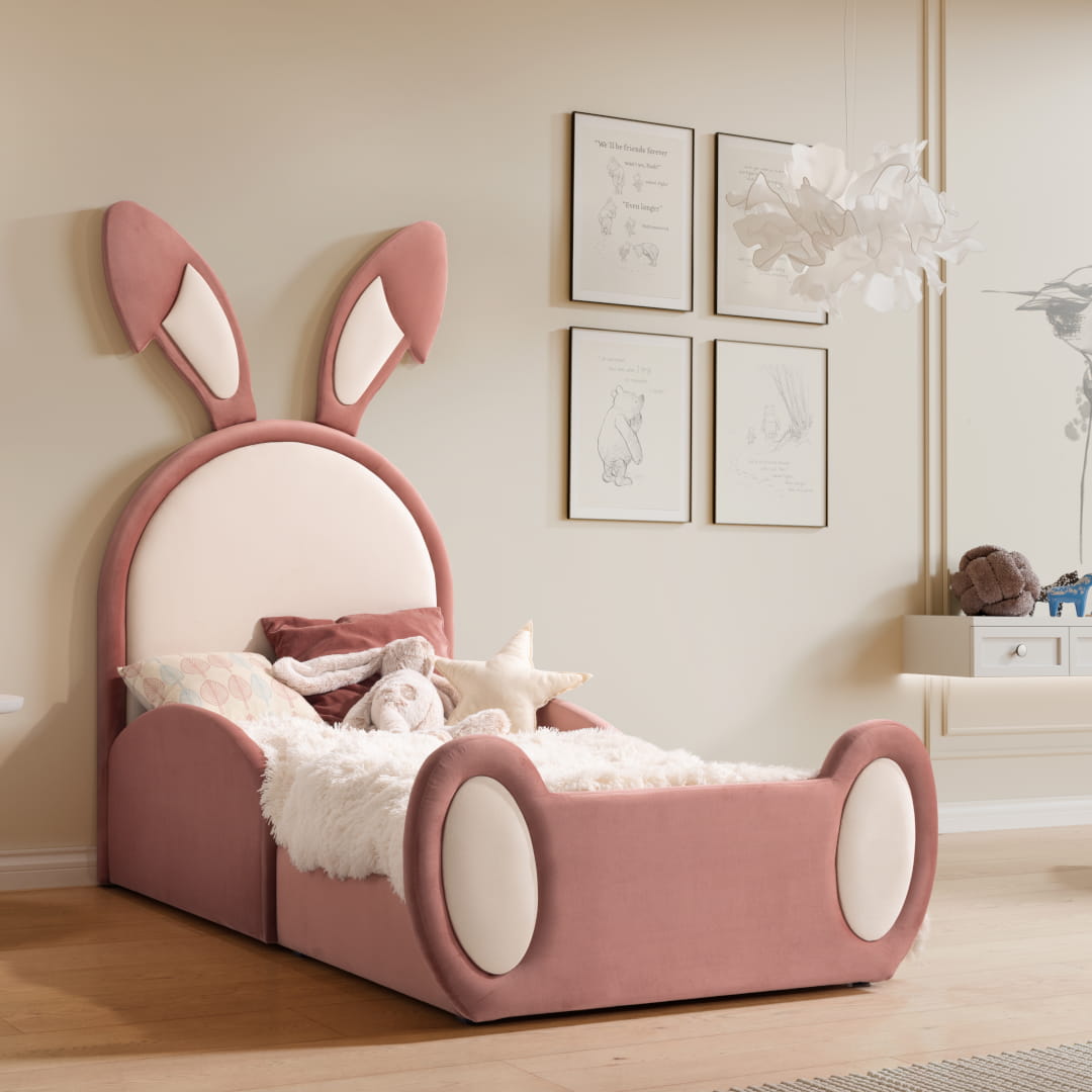 Łóżko tapicerowane, które nie tylko zachwyci estetyką i trwałością, ale także zapewni zdrowy i komfortowy sen dla najmłodszych. Funkcjonalne i nowoczesne łóżko tapicerowane KRÓLIK świetnie sprawdzi się w każdym pokoju dziecięcym, dodając mu ciepła i uroku.