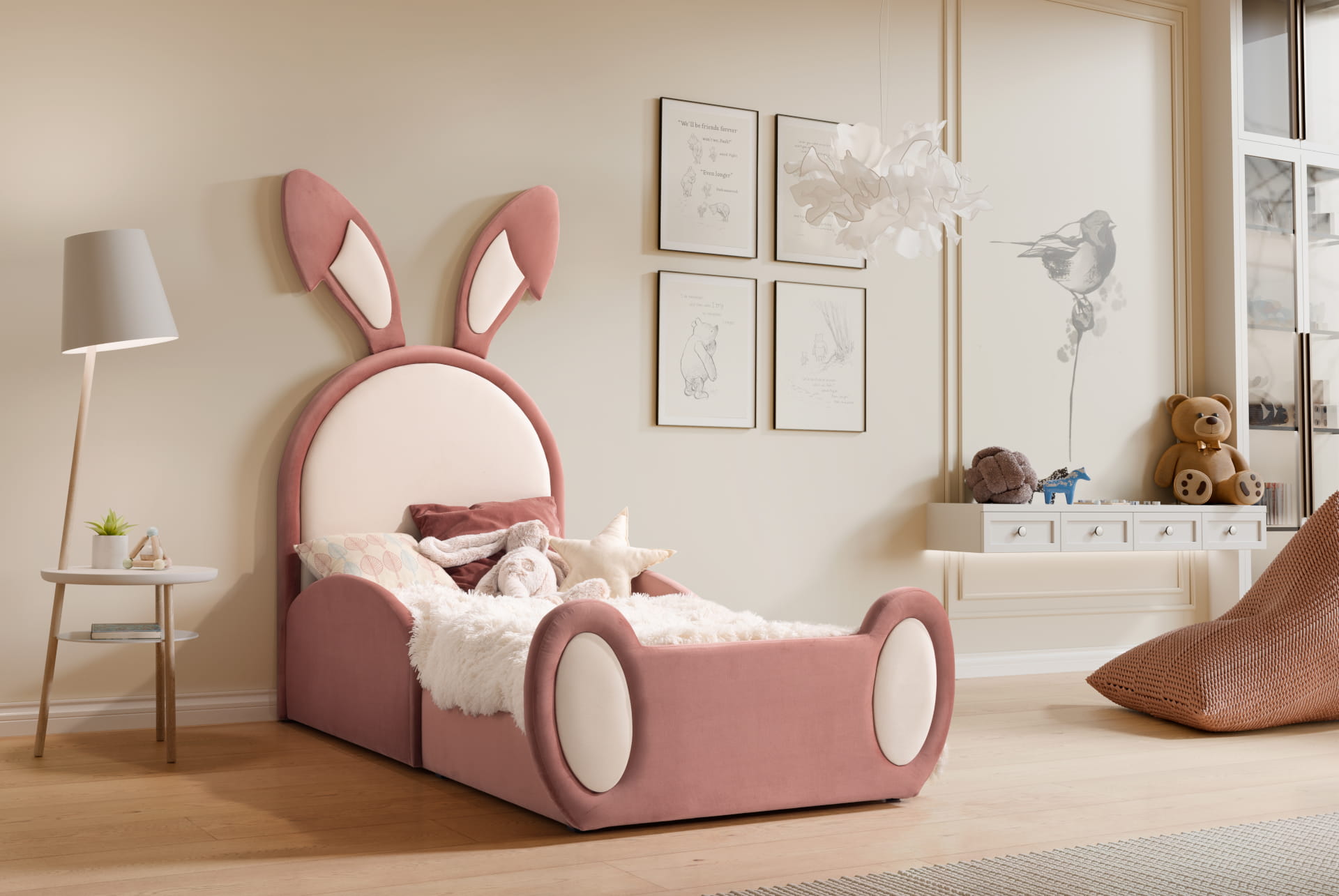 - Wezgłowie w kształcie królika: Wygodne oparcie dla pleców podczas czytania książek.