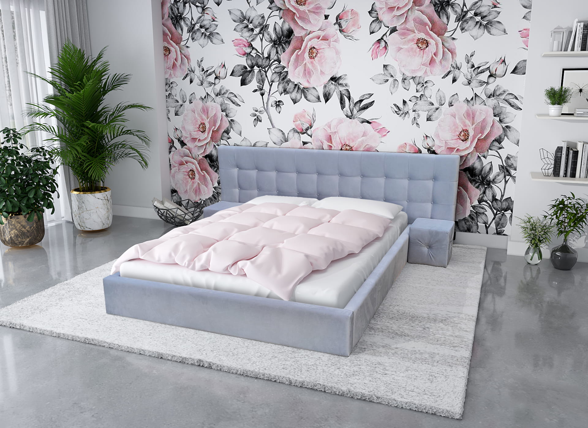 Łóżko Roma -wygoda i komfort idą tu w parze z elegancją i perfekcją dopasowania wszystkich elementów. Na pierwszy rzut oka widać klasyczne wezgłowie urozmaicone ozdobnymi guzikami. Z drugiej strony wydłużony panel, dzięki któremu łóżko nabiera dostojnego charakteru. W skład kompletu wchodzą też stoliki nocne, które harmonijnie komponują się z główną konstrukcją, podkreślając jednolitość stylu. Bogata gama kolorystyczna dostępnych tkanin dodatkowo podnosi walory estetyczne tego łóżka.